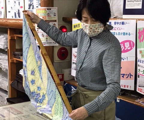 近年では、手づくり仕立ての綿わた布団を作る職人、技能士や、販売している専門店舗が減少しています。そのためか、県内はもちろん、関東などの遠方からご来店の方もいらっしゃいます。